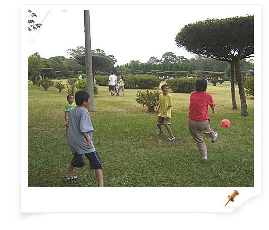 大樹下孩子們的盡情玩耍,身為大人的我們拋開忙碌的工作,不想公事,不想家事,坐在一旁悠閒地喝著拿鐵,頓時讓我彷彿置身國外,可以不用如在台北的小公園中人擠人之外,還得緊迫盯小孩,怕一時不察,孩子就被人口販子給抓走了,在這裡~我可以安心地讓孩子在大片的草原上奔跑。