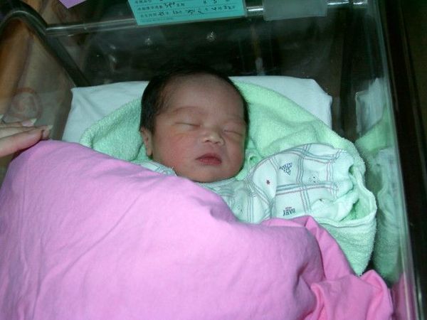 早上6點多,產兆出現了,第3胎,我以為小BABY會很快就出來和我見面,沒想到早上9點多到台大產房一檢查,根本沒開,但是有規則3到5分鐘一次的陣痛,不是超痛,被護士趕回去,下午睡一下午覺,居然不痛了....晚上8、9點才又開始規則陣痛,但也較痛一些, 想一想還是再去一趟台大吧!晚上9點多還先帶新來的菲傭去萬芳醫院打國際電話,10點多一到台大醫院還是沒開,天啊!越來越痛了,居然都沒進展,雖然是第3胎,心中仍不由得開始害怕,不知會痛多久,半夜12點多醫生一照超音波說--[胎兒頭的位置不對,較難開] [可能會等很久] ,但是因為是第3胎,醫生也不敢叫我們回家睡覺,我心想"越來越痛了,BABY要孝順一點喔!,不要讓馬麻痛太久,好不好".....後來我和把拔決定既然可能會耗很久,不如租個VIP單人待產室來享受一下 ,反正這輩子也沒住過醫院的VIP病房,原本還期待會不會像五星級飯店的高級設施,很遺憾!只是比普通待產室,人少一些,放了兩張床 ,一張產婦的,一張陪產者的.....結果沒想到才剛躺上床上,把拔才去辦住院,胎兒監控器一裝, 哇咧 ! 痛死了 !臭把拔去了好久,居然還買泡麵回來吃, 后~他以為他在野餐喔!!我開始語無倫次叫著--[把拔,好痛喔!怎麼辦!] ......就這樣一直痛到凌晨4點,護士來檢查, 開了,可以進產房了, 哇ㄚ!我好高興ㄛ(心中高興,表情還是很痛苦滴!)終於快解脫了,沒想到進了產房,真正的不安全感才出現, 因為醫生還沒來,產房裡一堆小醫生小護士,把我架上產台,更糟糕的是他們不疾不徐,還邊交談著-- [我看華醫師是來不及了,第3胎耶!] [先量血壓] 我好像一隻待宰的羊,驚慌的被綁在屠殺台上,又不知何時可以解脫,旁邊的屠夫,還可以邊聊天邊擦拭屠刀, 我急著問--[華醫師來了沒有?]..........[我可以用力嗎?]..........[不會裂傷嗎?] 終於有一個男助產士有回應--[沒關係,可以用力了?我們還有別的醫生在] [來!用力] [重來][再一次]